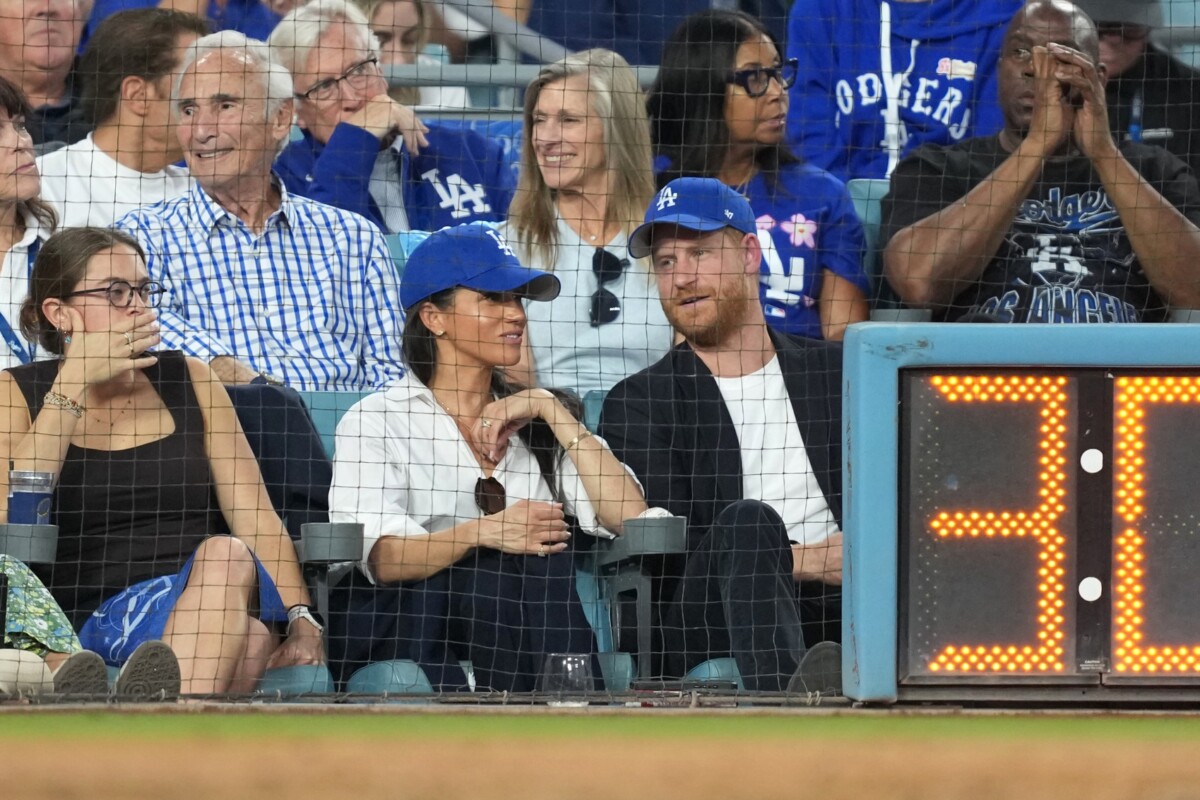 After attending Game 4 of the Fall Classic at Dodger Stadium, the prince and his wife, Los Angeles native Meghan Markle, were seen in the first row behind home plate donning Dodgers hats.